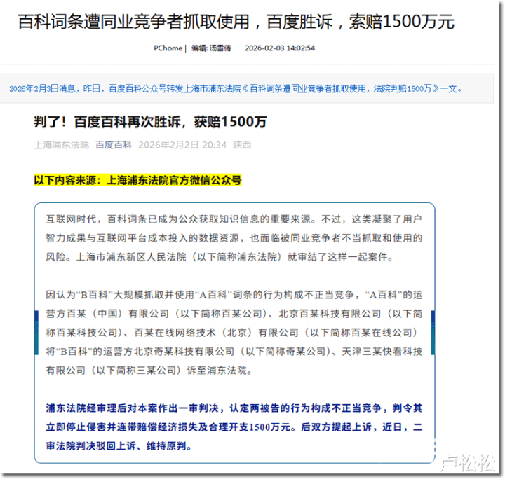 过去我们总觉得:网上内容谁都能用,抄一点不算啥,反正都是网友写的。但这次的1500万,直接把大厂们多年来心照不宣的“白嫖思维”给干碎了!